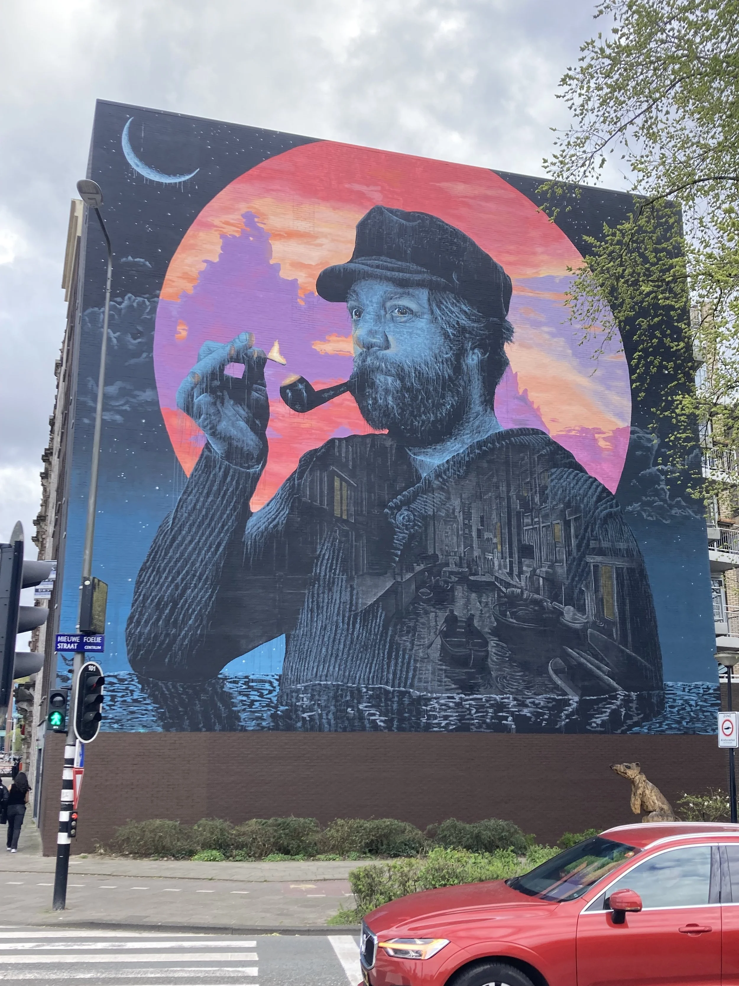 From left to right: buildings from this weekend’s ride. Which went out to the tulip fields. An indecisive deer crossed the path, this is it crossing back. Stopped for a coffee at the beach and got an unusually good piece of cake! The dunes. Good street art on the way back through Amsterdam. Current weather forecast/warnings for Iceland: 40m/s wind, “travelling is not advised”.