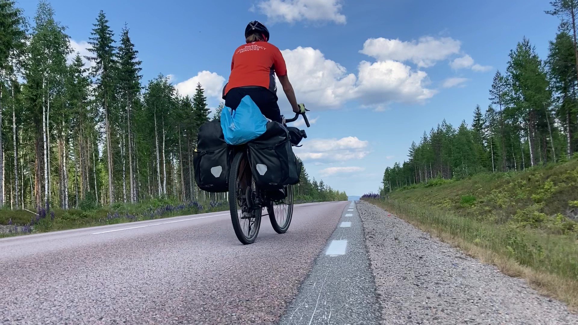 One other issue is that the place I'm staying tonight is in the middle of nowhere, and I need to bring and make dinner. And breakfast. I went for a safe an easy option, and got pasta and pasta sauce. I'm taking them in a pannier, wrapped up in my jersey for extra insulation. I also need some breakfast things like milk: but I'll get those in Hagfors which is the last town, there's three hours of cycling after that - which is not great, but it's better than trying to keep milk chilled all through a hot day.